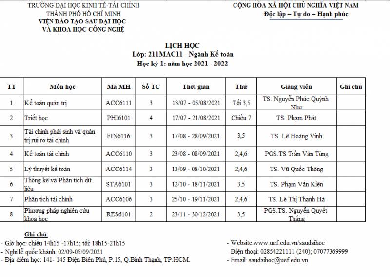 Updated schedule of Semester 2 - 172MAC11 class – Accounting major