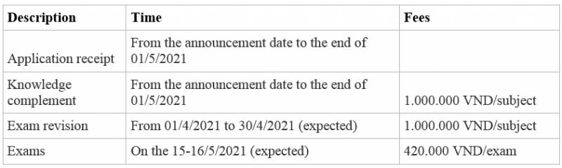 - Applicants whose university major is close to the registered major have to attend complementary courses before the entrance exams (determined based on the university transcript of the applicant).