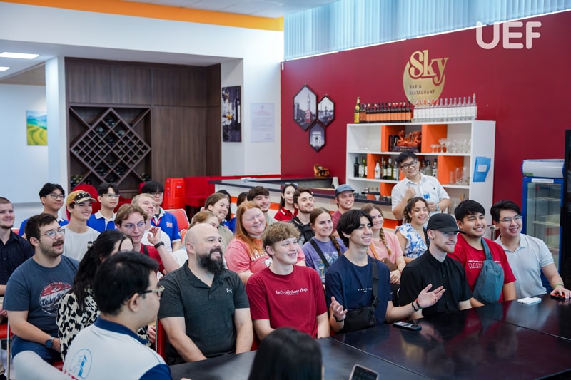 Accompanying the U.S. student delegation was Mr. Kevin Thacker, Consultant of M&K Tourism and Culture Exchange. UEF representatives included Dr. Do Nguyen Huu Loc - Vice President, Prof.Dr. Eric Jose Olmedo Panal - Director of the International Institute, Ms. Tran Phuong Quynh - Deputy Director of the International Institute, and Mr. Nguyen Ba Anh - Deputy Director of the International Institute.