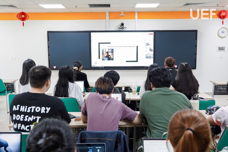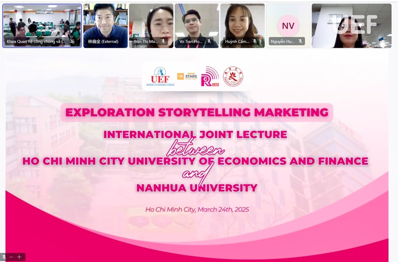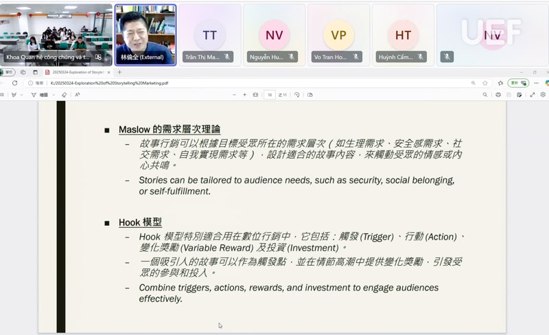 MARCH 24 - Following the international collaborative series activities aimed to provide UEFers with a variety of academic and modern experiences, Faculty of Public Relations and Communication (PRC) collaborated with Nanhua University (Taiwan) to organize a co-teaching class for the Marketing Communication course, themed “Exploration storytelling marketing.”