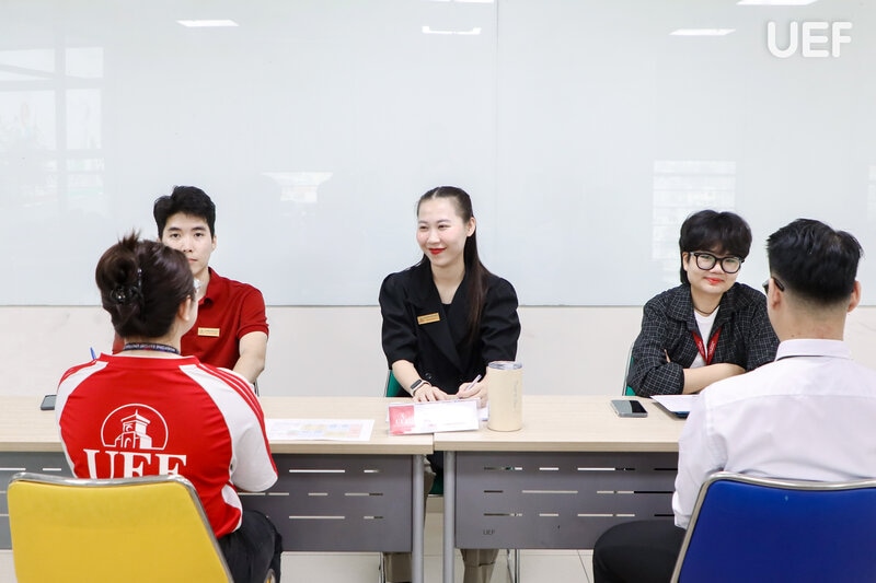 This year’s interview panel included Ms. Chu Ngoc Anh Thu – International Cooperation Officer at the International Institute; Mr. Nguyen Nhat Minh – International Cooperation Officer at the International Institute; and representatives from the International Exchange Friends (IEF) Club. With extensive experience in organizing international exchange activities at UEF, the panel members posed practical and thought-provoking questions to fairly assess the candidates’ capabilities.
