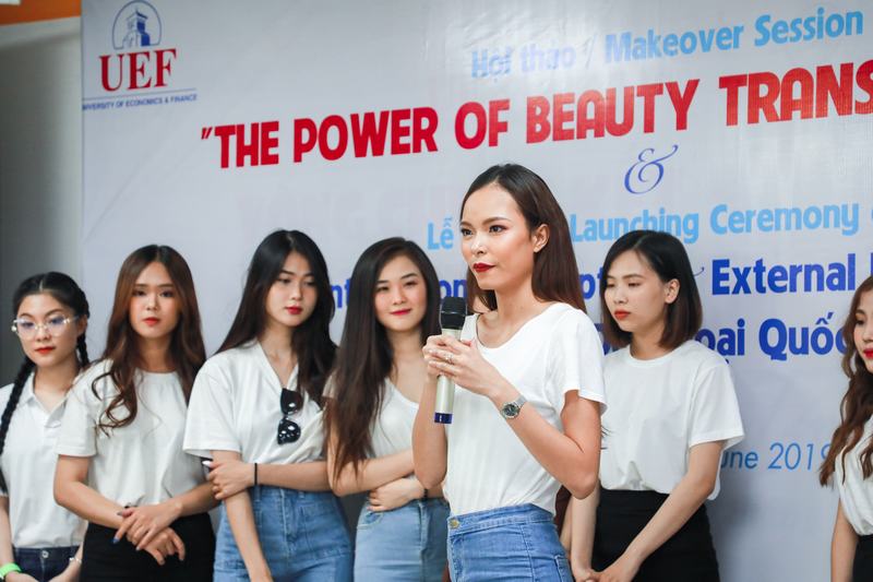 Attending the workshop entitled “The Power of Beauty Transformation”, UEF students witnessed the miracle of makeup power when the Makeup Wizard Myka Nguyen demonstrated her work on a UEF student. Not only instructing on professional makeup, Myka Nguyen also gave detailed advices about making up suitable for every styles.