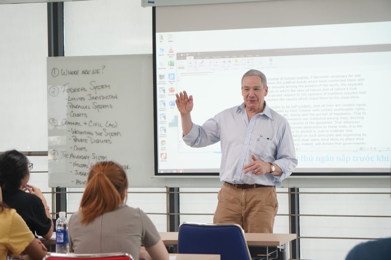 During his stay at UEF from Dec 23 to Dec 27, Prof. Robert E.Shapiro will continue to provide students with knowledge of Laws as well as experiences for working as lawyers. The next lessons are the Court System, Common Law Topics, Statutory Law Topics, and Other U.S. Law.