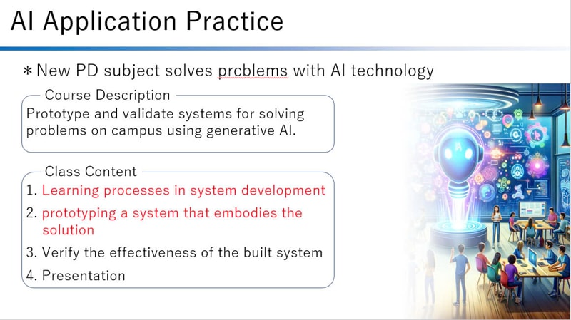 According to K.I.T's curriculum, these modules are designed for first-year students to gradually familiarize themselves with basic AI applications, enabling them to integrate this knowledge into other specialized courses.