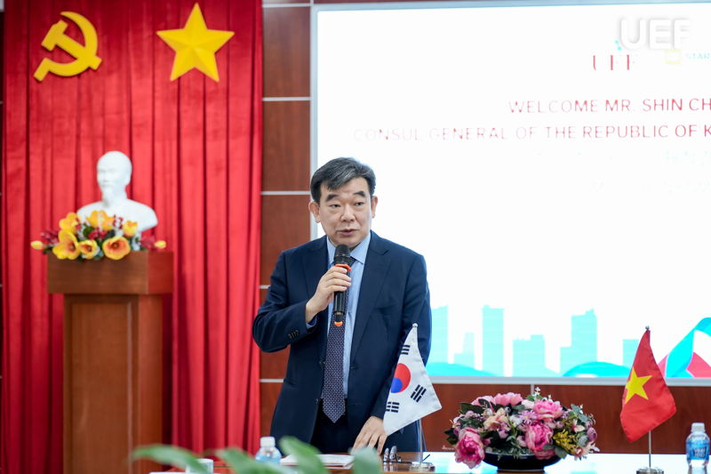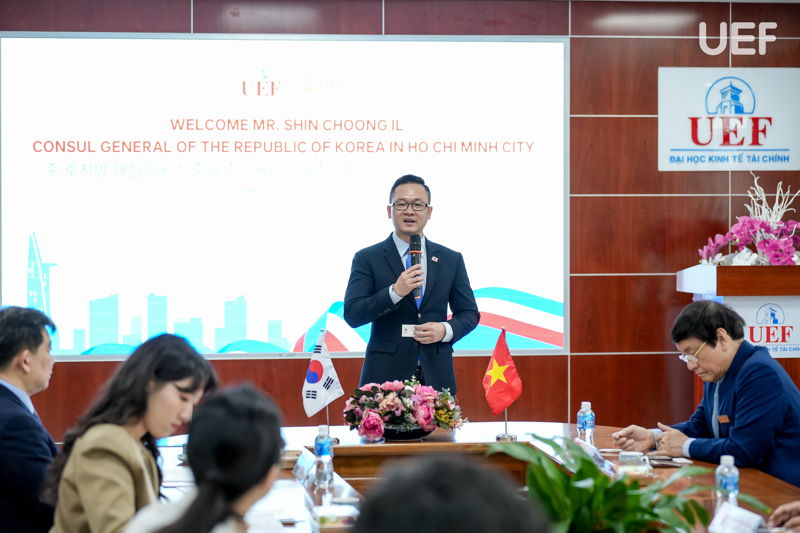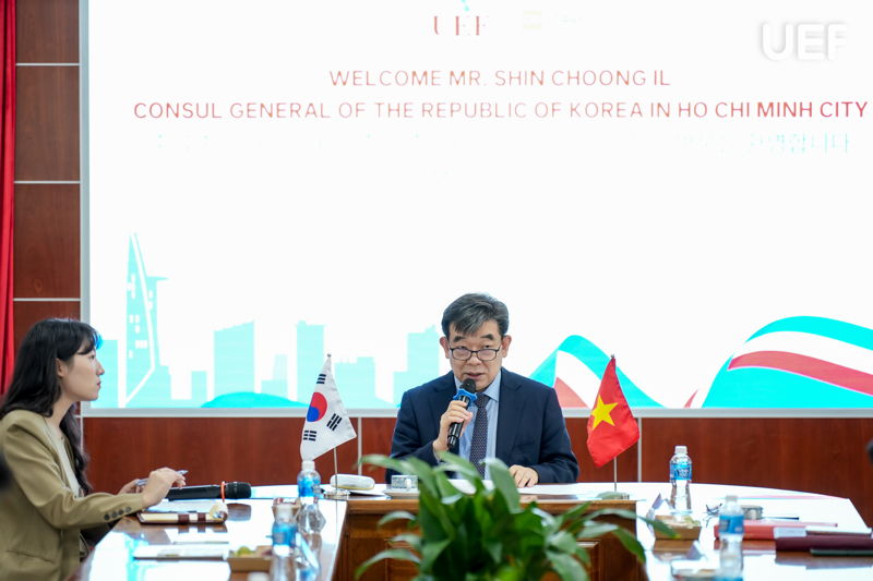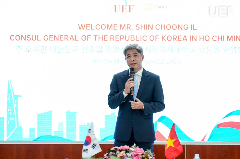 Consul General Shin Choong Il expressed his appreciation for UEF’s warm welcome and reaffirmed his willingness to support Korean language education initiatives and encourage students to pursue this field. He also acknowledged UEF's active role in partnering with the Korean Language Center in Ho Chi Minh City to organize meaningful exchange activities, contributing to the growing Vietnam–Korea educational relationship.