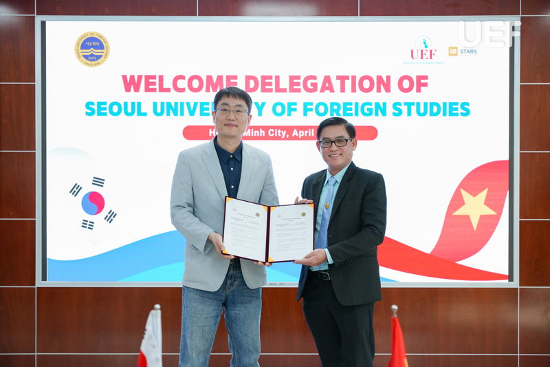 APRIL 4 - UEF held a meeting and officially signed an MOU with Seoul University of Foreign Studies (SUFS), UEF’s new partner in language and translation - interpretation training in South Korea. The event opened up numerous opportunities for international learning and academic exchange for UEFers and learners, especially those studying Korean Language and aspiring to experience an advanced educational environment in South Korea.