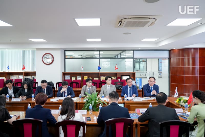 Representing UEF were Dr. Nguyen Thanh Giang, President; Dr. Nhan Cam Tri, Vice President; Dr. Do Huu Nguyen Loc, Vice President; Prof. Dr. Eric Jose Olmedo Panal, Director of the International Institute; Dr. Nguyen Kim Thoa, Deputy Director of the International Institute; Ms. Pham Thi Thuy Linh, Deputy Dean of Faculty of Languages and International Cultures; and Dr. Bui Thi My Linh, Head of the Korean Language.