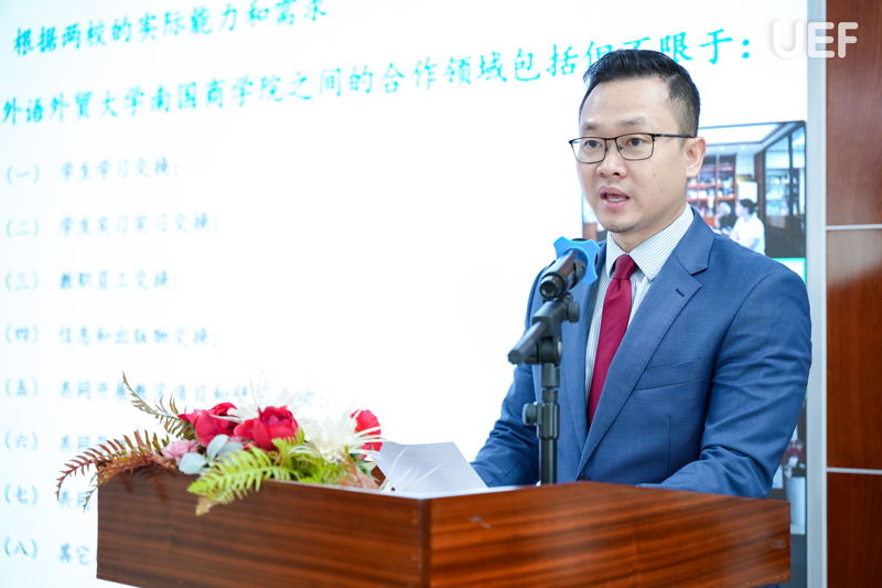 Conducting the MOU cooperation signing ceremony between UEF and Guangdong University of Foreign Languages and Trade