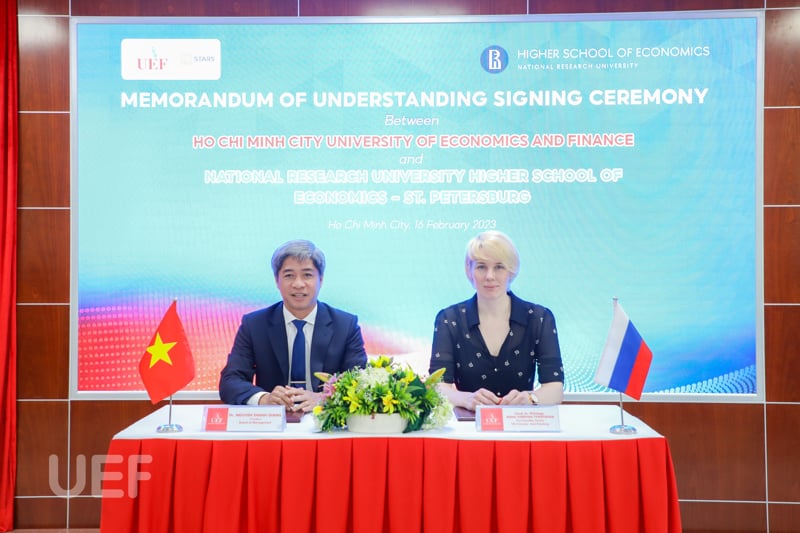 FEBRUARY 16 - Continuing to expand the cooperation "map" for students to immerse in various learning environments and gain more international experiences, the representatives of UEF had a meeting with the delegation from Higher School of Economics - National Research University (HSE University) - Saint Petersburg. During the meeting, the two universities discussed and signed the MOU, opening up new learning opportunities for students.