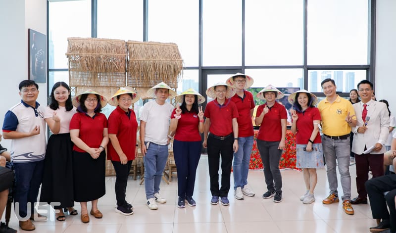 On the UEF side, welcoming and exchanging with the international group were Dr. Ngo Minh Hai - Vice President; Ms. Nguyen Thi Kim Thoai - Deputy Dean, Faculty of Tourism and Hospitality Management; Mr. Nguyen Viet Thuy - Deputy Dean, Faculty of Tourism and Hospitality Management; Ms. Tran Thi My Phuong - Head, Center of Service-Learning; Ms. Ha Le Thu Hoai - Deputy Dean, Center of Project Design Education; Mr. Tran Dinh Tuan - Head, Tourism and Travel Services Management; Mr. Tran Trong Thanh - lecturer, Tourism and Travel Services Management.