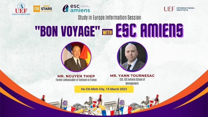 MARCH 15 - To offer students a better understanding of the articulation program in France, as well as a chance to meet and interact with CEO of ESC Amiens School of Management, UEF International Institute will co-host the study in Europe information session: "Bon Voyage" with ESC Amiens.