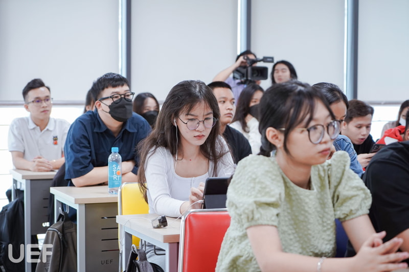 Starting the class, Dr. Do Huu Nguyen Loc welcomed and thanked TAR UC representatives. He shared that UEF was heading toward the aim of internationalizing the university environment, so this class was a great opportunity for students to connect and exchange knowledge.