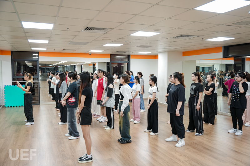 With the aim of offering students, particularly those in the Korean Language Programme, an in-depth understanding of Korean arts and culture, UEF, in partnership with the Korean Cultural Center in Vietnam, inaugurated the K-POP Academy 2024 as a complimentary programme. The dance class officially commenced on the evening of September 17, drawing a significant number of students deeply passionate about art and dance.