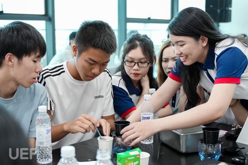 Accompanying the students were Ms. Nguyen Ho Tieu Anh, CEO of Ngon va Lanh Food Company, and Ms. Nguyen Thi Thao Quynh - founder of An Liam Coffee Journey, both experienced specialists in Vietnamese cuisine. This event helped UEF and Japanese students learn how to make and savor coffee and enjoy mung bean cakes in the Vietnamese style. At the end of the program, students from both countries had free time to socialize and make friends and exchange cultural features with each other.