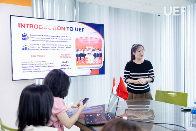 FEBRUARY 14, UEF organized a meeting and study, internship programs exchange session with a group of international students from Perbanas Institute, Indonesia. This event is part of UEF’s international cooperation initiatives, providing foreign students the opportunity to experience the academic environment at UEF and gain a deeper understanding of Vietnamese culture.