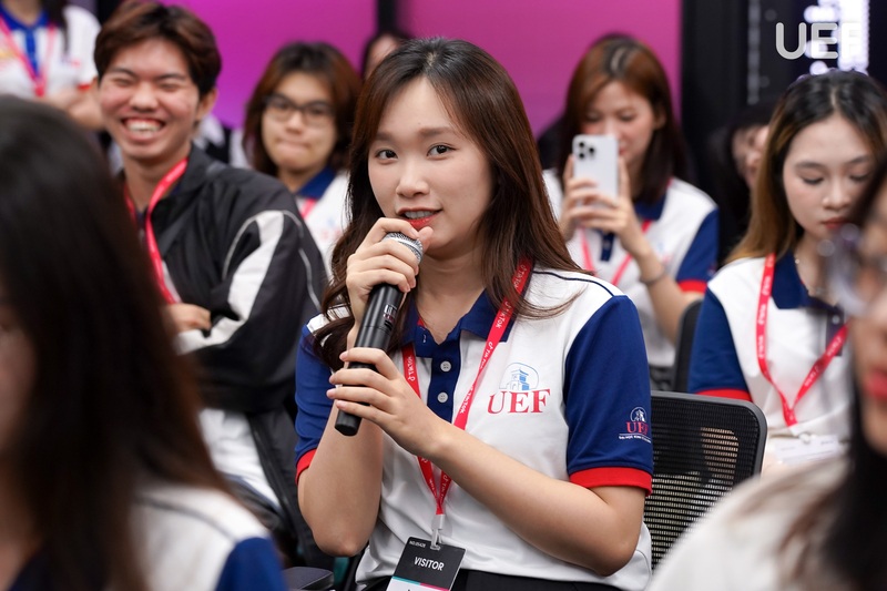 Trước khi kết thúc buổi chia sẻ, anh Phúc Nguyễn đánh giá cao về tinh thần học tập của UEFers, cũng như ngỏ lời sẽ đồng hành với các bạn sinh viên, đặc biệt là khối ngành Thương mại điện tử. Anh cũng gửi lời đồng viên cho các bạn sinh viên khi lĩnh vực này có nhiều biến động. Các bạn sinh viên nên tìm hiểu những thế mạnh của bản thân, sở thích, tính cách để có thể tìm kiếm cơ hội nghề nghiệp phù hợp cho mình.
