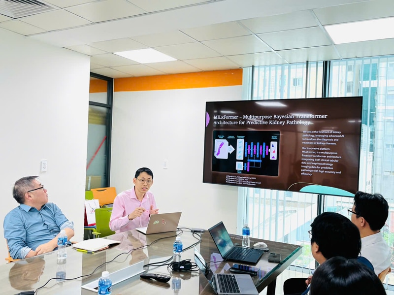 GS.TS. Nguyễn Văn Hiển cũng mang đến những góc nhìn sâu sắc về ứng dụng trí tuệ nhân tạo (AI) trong y học, đặc biệt là trong lĩnh vực chẩn đoán và điều trị các căn bệnh nguy hiểm như ung thư và bệnh thận. Ông đã nhấn mạnh những thành tựu nổi bật của AI trong việc hỗ trợ các bác sĩ trong chẩn đoán hình ảnh, giúp nâng cao độ chính xác khi đọc kết quả sinh thiết và các phương pháp chẩn đoán khác. Không chỉ dừng lại ở việc cải thiện hiệu quả lâm sàng, GS.TS. Nguyễn Văn Hiển cũng đề cập đến những tiềm năng phát triển ứng dụng AI, giúp tối ưu hóa quy trình y khoa, từ việc chẩn đoán nhanh chóng đến việc cá nhân hóa liệu pháp điều trị, mở ra một kỷ nguyên mới cho y học hiện đại.