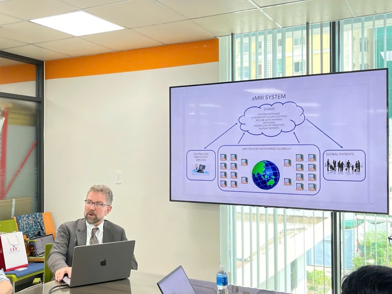 Ở phần seminar, GS.TS. Thomas Vaughan đã chia sẻ về công nghệ MRA (Magnetic Resonance Angiography), một bước tiến vượt bậc trong lĩnh vực y học hiện đại. Ông nhấn mạnh việc áp dụng công nghệ MRA trên toàn cầu không chỉ giúp cải tiến quy trình chụp MRI mà còn góp phần giảm thiểu đáng kể chi phí cho bệnh nhân. Nhờ vào sự kết hợp giữa trí tuệ nhân tạo (AI) và các giải pháp công nghệ tiên tiến, GS. Vaughan đã chỉ ra cách tối ưu hóa dữ liệu trong quá trình xử lý hình ảnh y học, đồng thời đưa ra những phương pháp hạ giá thành sản xuất thiết bị MRA, giúp công nghệ này trở nên dễ tiếp cận hơn với các cơ sở y tế và bệnh nhân trên toàn thế giới.