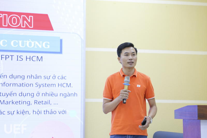 Chia sẻ với các bạn sinh viên tham gia Hội thảo về vấn đề nhân sự cho nhóm ngành Công nghệ thông tin, ông Lê Phước Cường cho biết: “
