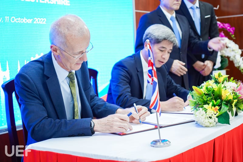 Ngay sau đó, đại diện UEF và UoG đã tiến hành ký kết MOU hợp tác trên các lĩnh vực đã thỏa thuận. Được biết trước đó, các đại diện đối tác đã có chuyến tham quan và bày tỏ sự ấn tượng với môi trường học tập của Nhà UEF.