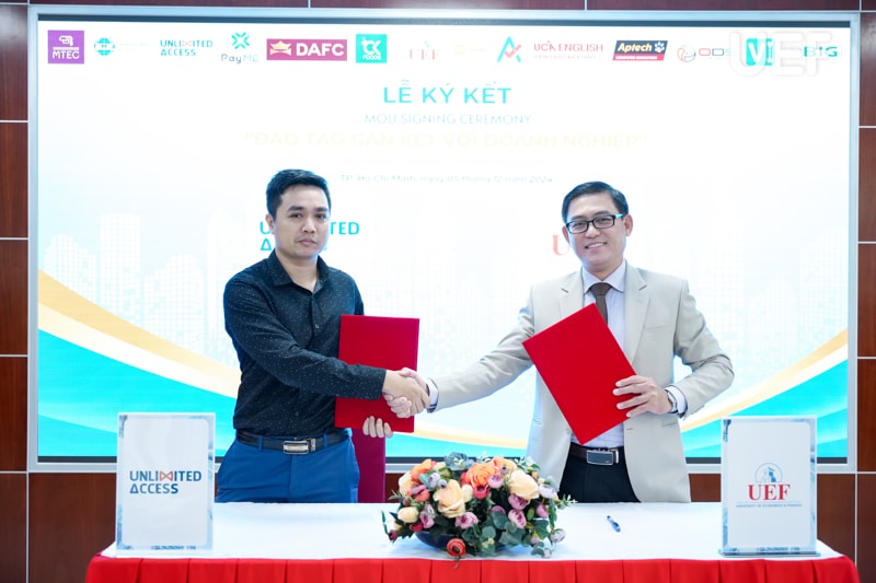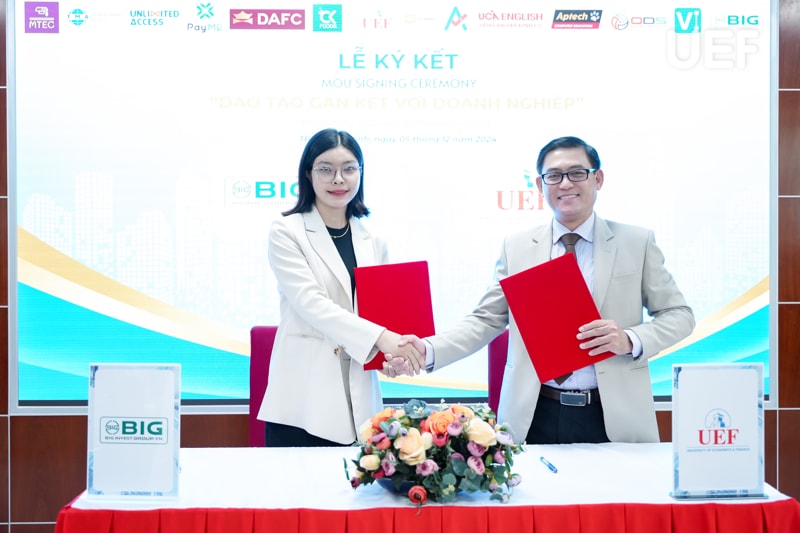 Kiên định với mục tiêu giúp người học phát triển kiến thức gắn liền với thực tiễn, sáng ngày 5/12, UEF đã tổ chức Lễ ký kết hợp tác (MOU) cùng 12 đối tác doanh nghiệp hàng đầu trong lĩnh vực công nghệ thông tin, thương mại điện tử và kinh doanh thương mại. Sự kiện là một bước tiến quan trọng trong việc hợp tác giữa Nhà trường và doanh nghiệp, đặc biệt mở ra nhiều cơ hội thực hành, việc làm và phát triển kỹ năng chuyên môn cho sinh viên.