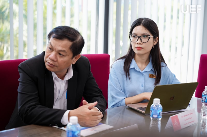 Đại diện UEF tham gia buổi lễ gồm có: TS. Đỗ Hữu Nguyên Lộc - Phó Hiệu trưởng; TS. Nguyễn Kim Thoa - Phó Viện trưởng, Viện Quốc tế; ThS. Trần Phương Quỳnh -Phó Viện trưởng, Viện Quốc tế; PGS.TS. Nguyễn Thành Luân - Phó Trưởng phòng, Phòng Khoa học công nghệ và Dự án quốc tế; TS. Hoàng Ngọc Thanh - Phó Trưởng khoa, Khoa Công nghệ thông tin; cô Hoàng Thị Hằng - Trợ lý trưởng khoa, Khoa Công nghệ thông tin cùng các giảng viên Viện Quốc tế.