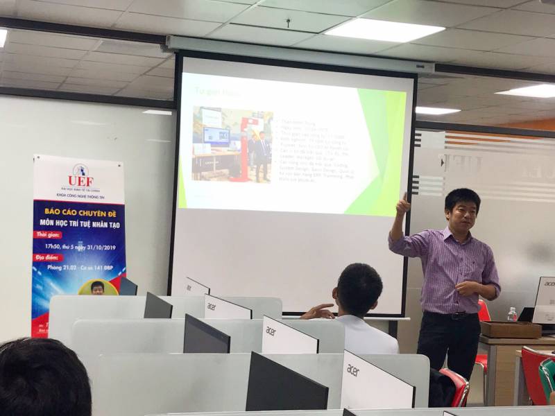 Chiều ngày 31/10, Khoa CNTT UEF đã tổ chức buổi báo cáo chuyên đề cho sinh viên. Hoạt động này góp phần đa dạng hóa chương trình học tập cũng như tăng cường kỹ năng, kiến thức thực tế cho các bạn sinh viên.