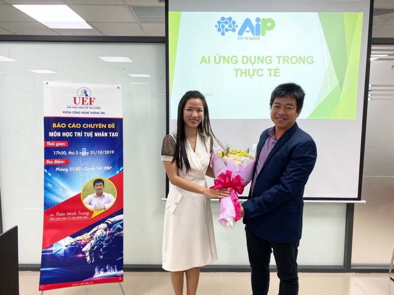 Theo đó, diễn giả Thân Minh Trung với hơn 20 năm kinh nghiệm làm việc đã giới thiệu cho các bạn sinh viên hiểu rõ hơn về ứng dụng AI (Artificial Intelligence) trong cuộc sống hiện nay, xen kẽ vào đó là hai công nghệ đang được nhắc đến rất nhiều là Machine Learning và Deep Learning cũng được ông nhắc đến.