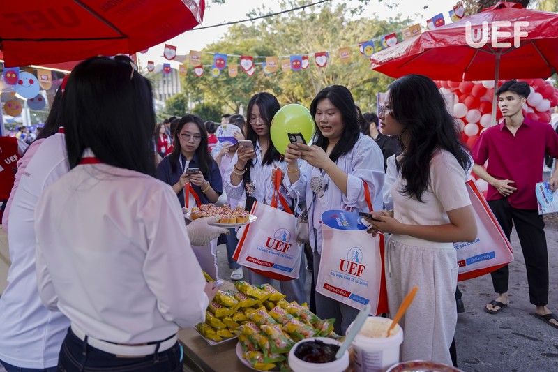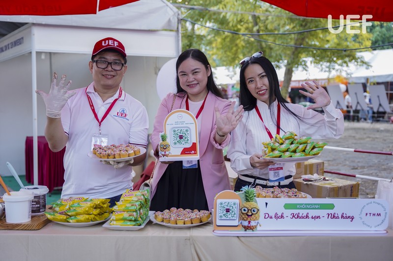 Không gian giao lưu này còn là nơi để các bạn có định hướng vào "Nhà UEF" có thể tìm hiểu những thông tin cần thiết về môi trường học tập, hoạt động ngoại khóa từ các anh chị sinh viên hỗ trợ. Ngoài ra, thí sinh và phụ huynh dừng chân tại khu vực của UEF còn được thưởng thức các món ăn, thức uống do giảng viên, sinh viên Khoa Quản trị du lịch - Khách sạn chuẩn bị và chế biến.