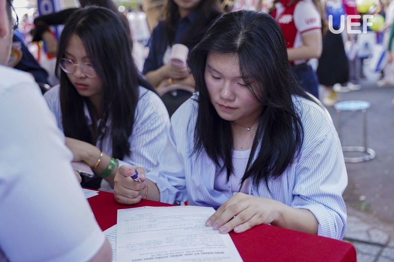 Trong kỳ tuyển sinh 2025, UEF thu hút thí sinh với chính sách đăng ký học bổng sớm với nhiều lợi ích thiết thực. Đăng ký học bổng sớm trong giai đoạn này là lựa chọn chiến lược để giảm bớt áp lực tài chính, đồng thời chủ động nắm bắt cơ hội vào đại học với nhiều điểm cộng. Ở ngày hội, Ban tư vấn cũng đã tận tình hướng dẫn thí sinh, phụ huynh hoàn thành hồ sơ đăng ký chính xác và nhanh chóng nhất.