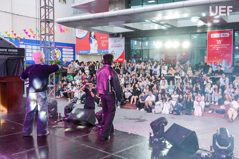 Cuối ngày, sân trường được chiếu sáng rực rỡ bởi ánh đèn của đêm gala tổng kết. Các tiết mục văn nghệ của CLB diễn liên tục, từ những bản mashup sôi động đến những màn trình diễn mãn nhãn. Hòa vào đó là tiếng vỗ tay, ánh đèn flash và những nụ cười rạng rỡ khép lại một ngày hội ý nghĩa. UEF Club’s Day 2025 khép lại trong cảm xúc lâng lâng, một hành trình của sáng tạo, kết nối và nhiều kỷ niệm cho các bạn sinh viên Nhà UEF.