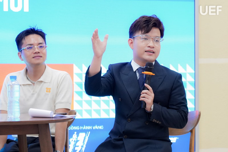 Cạnh đó, talkshow khởi nghiệp “Từ vùng quê hải đảo đến CEO Kakapo” với cuộc trò chuyện cùng anh Trương Quang Có - Chủ tịch HĐQT Công ty CP Sản xuất Thương mại Kakapo đã truyền cảm hứng về tư duy làm chủ, sự kiên định và bí quyết chuyển ý tưởng thành hành trình thương mại bền vững. Từ các câu hỏi được đặt ra cho diễn giả, sinh viên Nhà UEF hiểu hơn về những khó khăn, thách thức khi bước vào con đường khởi nghiệp thực tế, đồng thời mở ra các hướng nghề nghiệp mới phù hợp với xu hướng số hóa.
