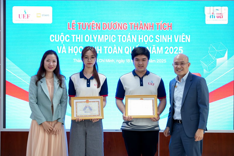 Song song với hoạt động nghiệm thu đề tài, Khoa cũng tổ chức vinh danh các sinh viên đạt giải tại kỳ thi Olympic Toán học sinh viên và học sinh toàn quốc lần thứ 31 năm 2025. Hai sinh viên Huỳnh Minh Hiếu (ngành Công nghệ thông tin) và Nguyễn Tú Như (ngành Khoa học dữ liệu) đã xuất sắc đạt giải Ba ở nội dung Đại số và Giải tích. Đó là những thành tích đáng tự hào, góp phần lan tỏa tinh thần học thuật trong toàn đơn vị.