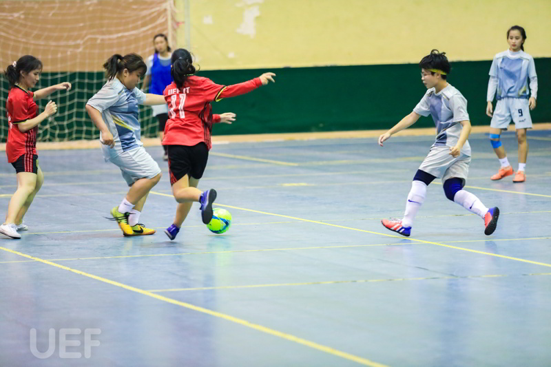 Bóng đá nữ là môn được thi đấu đầu tiên trong ngày bế mạc với màn tranh tài giữa khoa Kinh tế và khoa Công nghệ thông tin. Tiếp đà mạch thắng từ vòng bảng đến Bán kết, khoa Kinh tế vẫn giữ tinh thần “thép” và an tâm với trụ cột Nguyễn Thúy Duy. Ngay từ hiệp một, tiền đạo số 9 đã lập cú đúp bàn thắng tạo lợi thế lớn cho khoa Kinh tế trước khi bước sang hiệp 2.