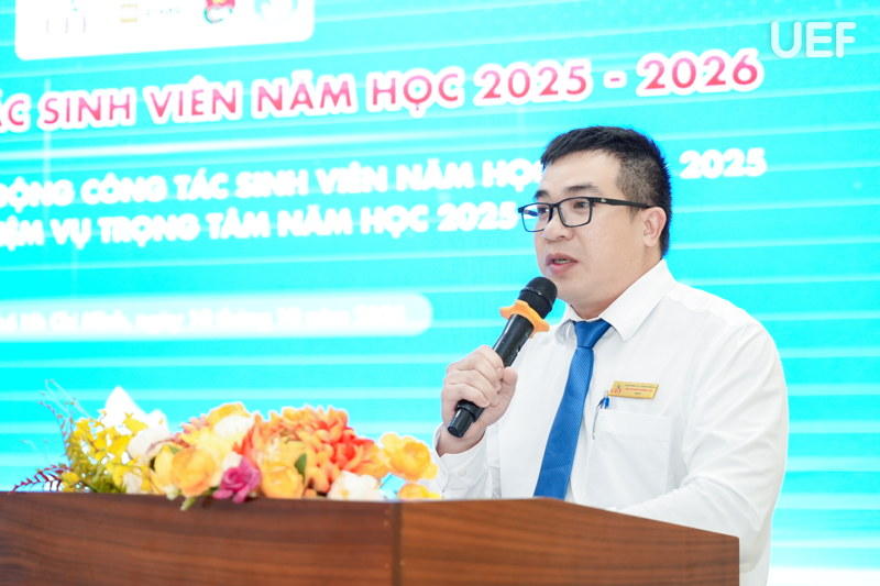 Báo cáo tại hội nghị, ThS. Bùi Quang Đông - Trưởng phòng Công tác sinh viên nhấn mạnh 10 nhiệm vụ trọng tâm của công tác sinh viên UEF trong năm học 2025 - 2026. Trong đó chú trọng đẩy mạnh các phong trào thực hành tiếng Anh, tăng cường giao lưu quốc tế, xây dựng mô hình “Sinh viên UEF sống đẹp”, thúc đẩy hoạt động cộng đồng, cũng như phát triển hệ sinh thái số hóa dịch vụ hỗ trợ sinh viên. Những định hướng này cho thấy nỗ lực của Nhà trường trong việc không ngừng nâng cao năng lực hội nhập, nhân cách và kỹ năng cho sinh viên trong kỷ nguyên mới.