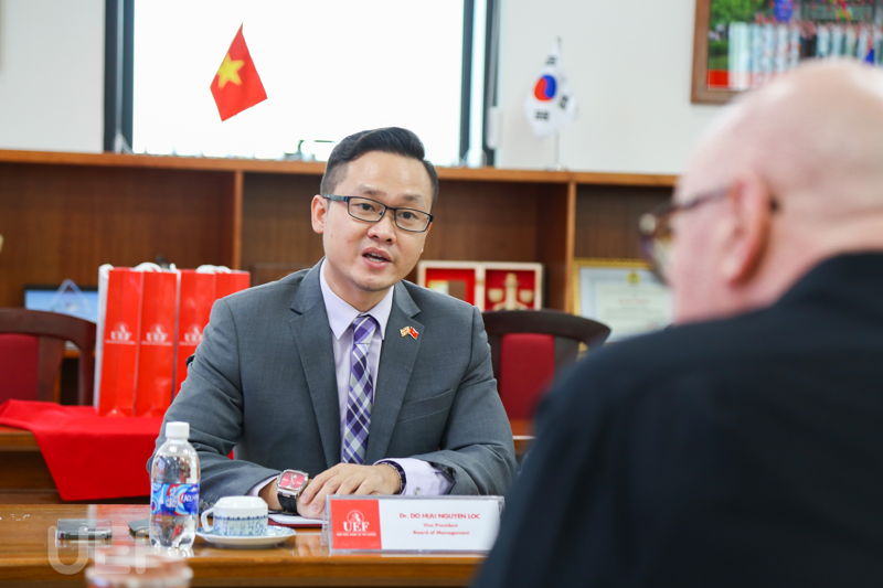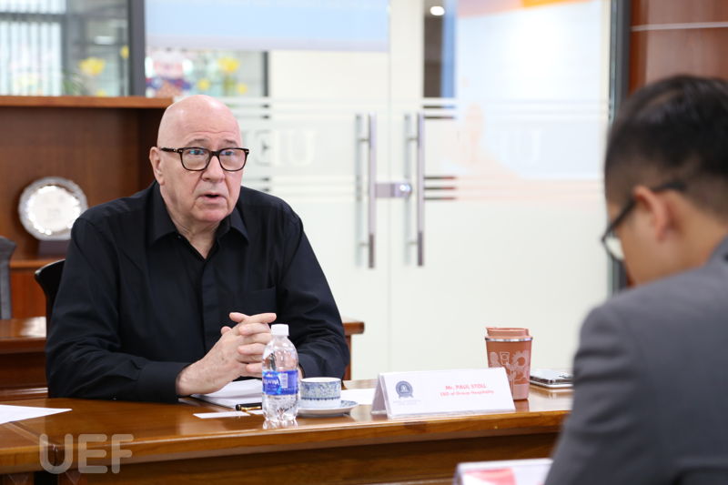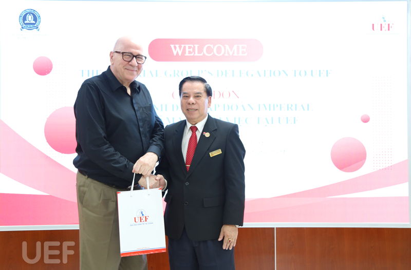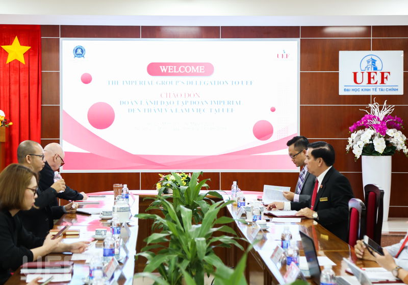 Đến thăm và trao đổi hợp tác với UEF, phía Imperial có ông Paul Stoll – CEO khối khách sạn – du lịch, ông Lê Đình Hiếu - Giám đốc dự án, ông Bùi Khắc Nam - Phó Giám đốc dự án, bà Nguyễn Ngọc Hà Phương – Chánh Văn phòng Tập đoàn. Phía UEF có TS. Đỗ Hữu Nguyên Lộc - Phó Hiệu trưởng Nhà trường, Lãnh đạo các khoa, phòng ban, viện.