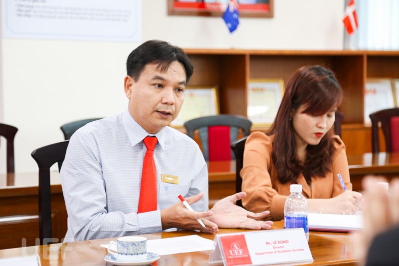 Trước khi bước vào quá trình trao đổi thông tin, đại diện UEF đã hướng dẫn các khách mời tham quan môi trường học tập của sinh viên trường. Tại buổi làm việc, hai bên tiếp tục thảo luận nhiều nội dung hợp tác. Cụ thể, Imperial sẽ hỗ trợ UEF tổ chức các buổi hội thảo chia sẻ kiến thức thực tiễn cho sinh viên theo từng chủ đề cụ thể, tương ứng với các chuyên ngành, triển khai chương trình trải nghiệm học tập và làm việc thực tế ngắn hạn tại khách sạn Imperial.