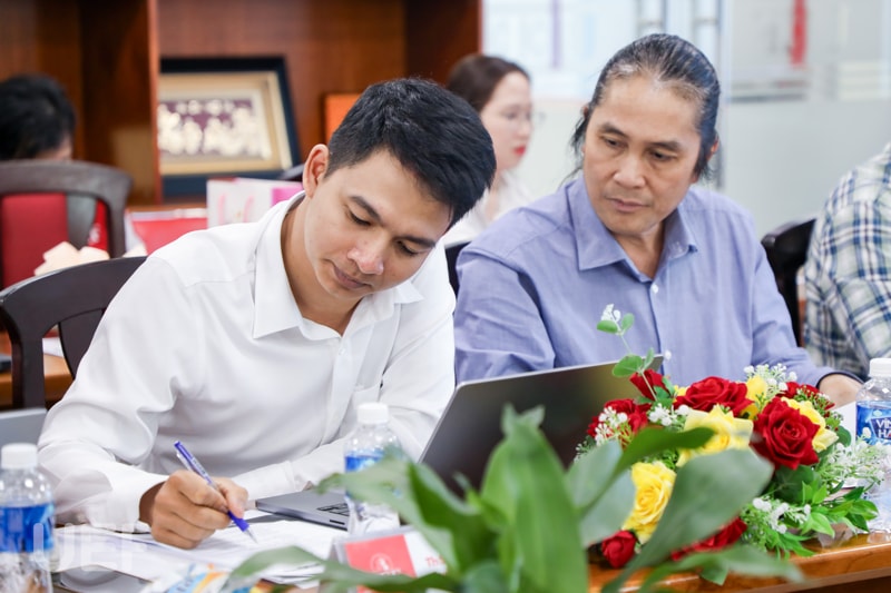 Các thầy cô tập trung lắng nghe và góp ý hoàn thiện cho từng đề tài