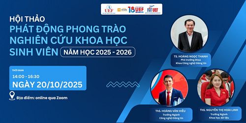 Chiều ngày 20/10, Khoa Công nghệ thông tin UEF (FIT) đã tổ chức thành công Hội thảo phát động phong trào Nghiên cứu khoa học sinh viên năm học 2025 - 2026 theo hình...