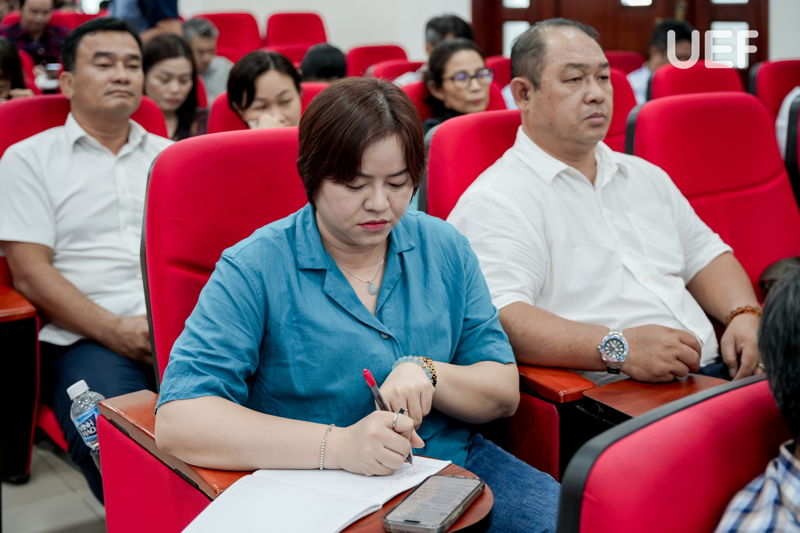 Phát biểu khai mạc chương trình, ông Đỗ Quốc Anh đã điểm qua hành trình phát triển của công nghệ. Trong đó nhấn mạnh sự xuất hiện và trở nên phổ biến của AI trong bối cảnh thời đại số hiện nay. Đề tài này đang là xu hướng được xã hội quan tâm. Chính vì vậy, Nhà trường và Sở đã nghiên cứu để xây dựng nên khóa tập huấn đầy tính thực tiễn này. Đại diện UEF cũng hy vọng sẽ mang đến bầu không khí mới cho người tham gia, ngoài cập nhật thêm kiến thức để phục vụ công việc tốt hơn còn có thể mở rộng, kết nối và thiết lập thêm nhiều mối quan hệ mới.