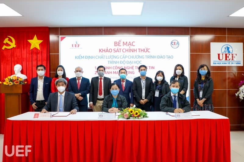 Kết thúc Lễ bế mạc đợt khảo sát kiểm định chất lượng chương trình đào tạo trình độ đại học 2 ngành Công nghệ thông tin và Marketing, đại diện UEF, Đoàn chuyên gia đánh giá ngoài và Trung tâm Kiểm định chất lượng giáo dục đã ký biên bản hoàn thành đợt khảo sát chính thức.