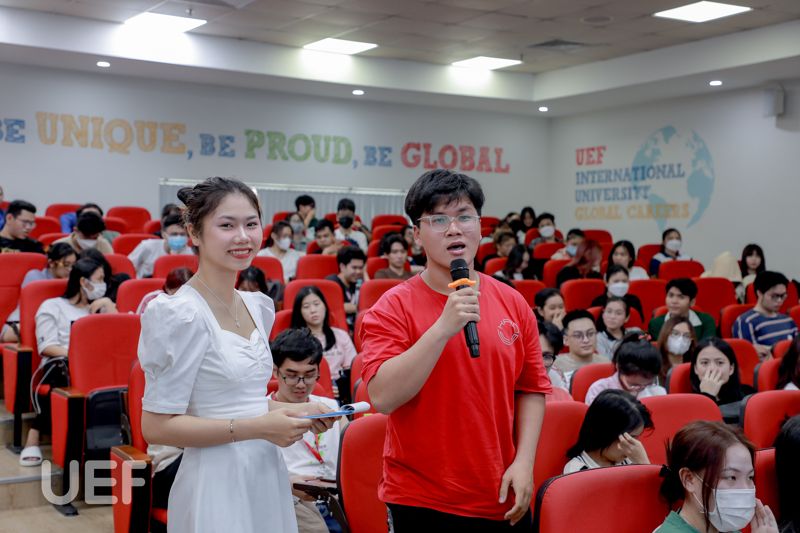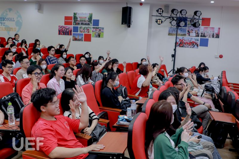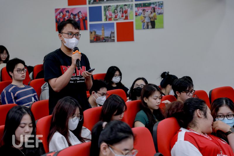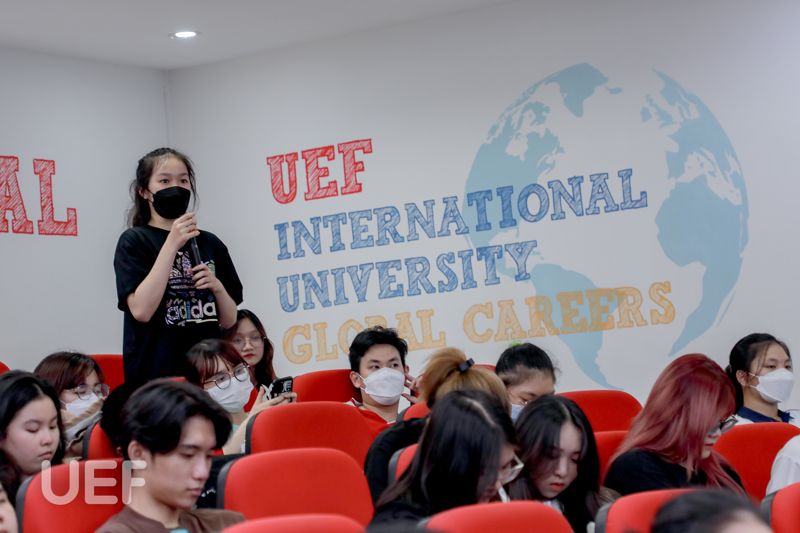 UEFers có cơ hội gặp trực tiếp chị Thanh Phạm nên tỏ ra hào hứng và thể hiện tinh thần học hỏi cao. Các bạn đã mạnh dạn xung phong đặt rất nhiều câu hỏi hay. Nữ diễn giả cũng công nhận điều này và giải đáp nhiệt tình những thắc mắc của sinh viên.
