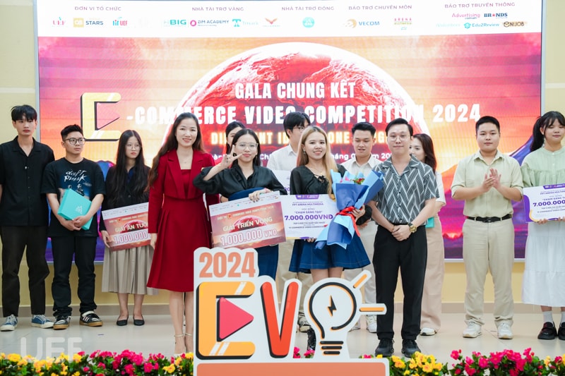 Sau hai tháng phát động, đường đua đã chính thức về đích vào ngày 25/6 vừa qua. Tại Chung kết E-commerce Video Competition 2024: Different Ideas - One Target, top 5 đội thi đã tự tin, bản lĩnh thuyết trình về sản phẩm được thực hiện dựa trên các “business case” đã đưa ra trước đó. Với phong cách trình bày ấn tượng, kế hoạch chi tiết, thuyết phục ban giám khảo và khán giả, đội thi The Marcom - UEF đã chinh phục vị trí Quán quân EVC mùa thứ hai.