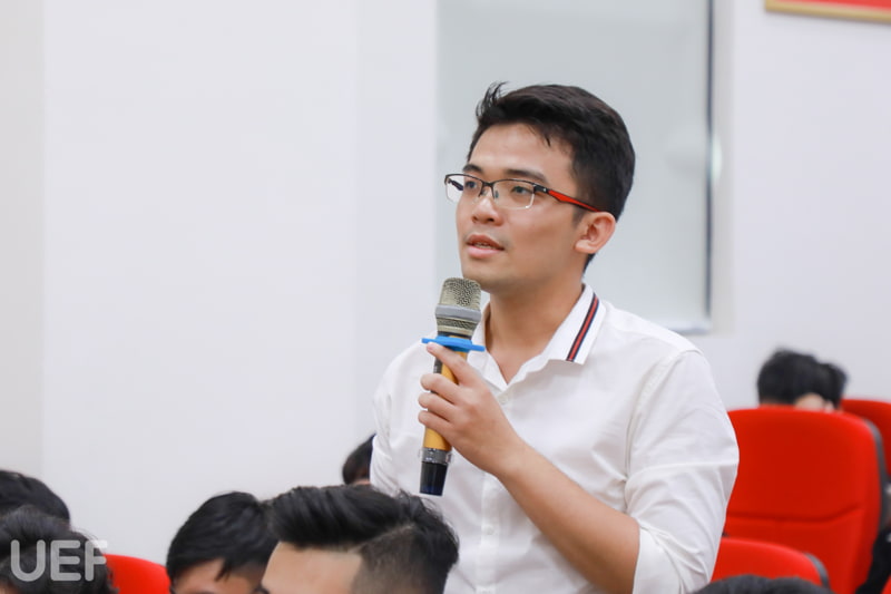 Các bạn sinh viên lắng nghe và đặt ra thắc mắc về xu hướng phát triển của lĩnh vực IT