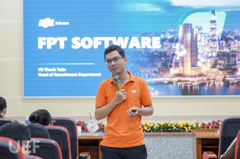 Về phía khách mời tham dự có: ông Vũ Thanh Tuân - Trưởng phòng Thu hút và Tuyển dụng Nhân tài FPT Software và các anh, chị nhân viên đến từ FPT Software.