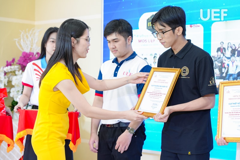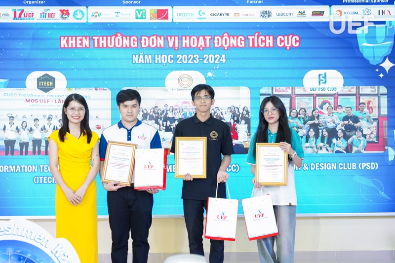 Đồng thời, để ghi nhận sự tích cực tham gia các công tác Đoàn, Hội cũng như sự cố gắng đẩy mạnh hoạt động của các câu lạc bộ (CLB) trong năm học 2023 - 2024, khoa đã tuyên dương Liên chi Đoàn, Liên chi Hội, CLB Công nghệ thông tin (Information Technology – ITECH), CLB Thương mại điện tử (E-Commerce Club - ECC) và CLB Thiết kế đồ hoạ (Passion & Design Club – PSD). Ngoài ra, nhằm khích lệ và tạo động lực cho các bạn tân sinh viên bước vào hành trình mới, khoa cũng đã trao thưởng đến tân sinh viên đạt thành tích cao theo các phương thức xét tuyển.