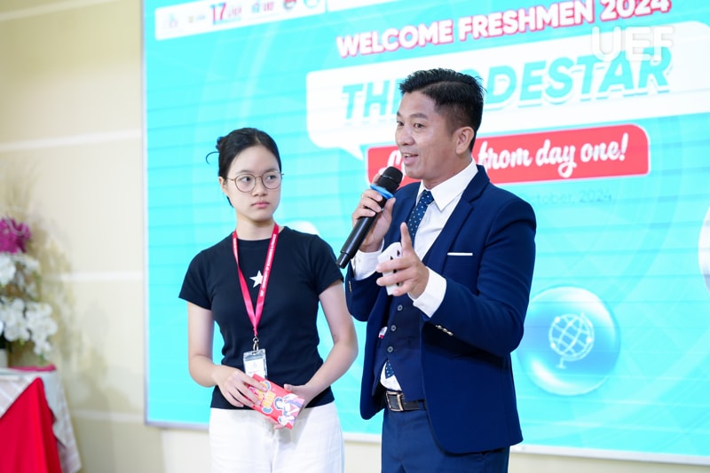 Như những lời chia sẻ gần gũi và đầy yêu thương của TS. Nguyễn Thanh Giang - Hiệu trưởng Nhà trường ở đầu chương trình đã phần nào giúp tân sinh viên vẽ ra được bức tranh cho 4 năm tại UEF: “Thầy biết rằng khóa 2024 đang có nhiều băn khoăn, lo lắng và bỡ ngỡ trên hành trình mới, trong môi trường mới. Tùy vào mỗi bạn mà thời gian 4 năm sắp tới sẽ được xem là dài hay ngắn, thách thức hay cơ hội, khó khăn hay dễ dàng. Nhưng với tâm thế nào đi nữa thì đây sẽ là thời gian cực kỳ quan trọng cho tương lai sau này. Các bạn hãy tích lũy thật nhiều kiến thức, kỹ năng, trải nghiệm, các mối quan hệ,... Mỗi bạn ở đây sẽ có những điều kiện học tập khác nhau nhưng hãy cố gắng chọn hướng đi phù hợp với mình để hoàn thành trọn vẹn hành trình này. Việc học hiện nay vừa dễ vừa khó bởi những sự hỗ trợ hoặc tác động của công nghệ. Điều quan trọng nhất là đừng để công nghệ dẫn dắt mà hãy tận dụng nó phục vụ chúng ta. Như thông điệp của khoa gửi gắm, hy vọng các bạn sẽ tìm thấy được nhiều giá trị mới mẻ của bản thân mình và được soi đường để đi đến những thành tựu mới”.