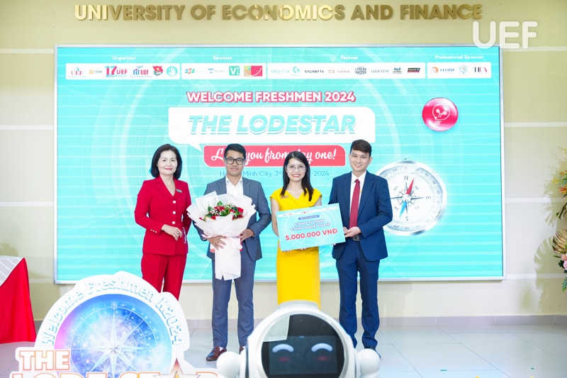 Đáp lại tình cảm từ thầy cô, đại diện tân sinh viên, bạn Trần Đăng Khoa - ngành Công nghệ thông tin đã hứa sẽ cố gắng phấn đấu trong học tập để trở thành phiên bản đặc biệt nhưng không tách biệt. Bạn cũng động viên K24 rằng: “Sự đa dạng từ quá trình sống của mỗi cá nhân trước đây sẽ tạo nên sự đa dạng ở môi trường đại học. Vì vậy, chúng ta hãy cùng nhau cảm nhận và hòa nhập để tự tích lũy hành trang mới cho mình. Mỗi hành trình sẽ là một sợi chỉ dệt nên tấm thảm của riêng mỗi người. Tấm thảm ấy có sặc sỡ hay không là do chính chúng ta quyết định”. Được biết, Đăng Khoa trúng tuyển vào UEF với mức học bổng tài năng 100%. Bạn là Vận động viên quyền Taekwondo quốc gia, liên tiếp nhận Huy chương Vàng tại Sea Game 31 và 32.