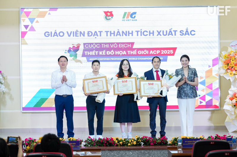 Cũng tại sự kiện, UEF được vinh danh là đơn vị có thành tích xuất sắc nhất trong công tác hướng dẫn, đào tạo thí sinh và có giảng viên hướng dẫn thí sinh xuất sắc nhất, tiếp tục khẳng định vị thế của UEF trong hệ sinh thái giáo dục sáng tạo và chất lượng.