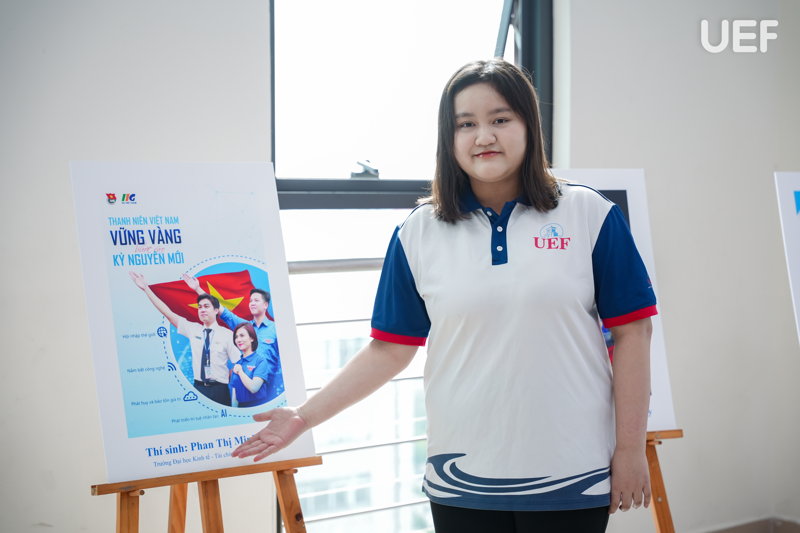 Với thành tích này, Minh Nhã sẽ đại diện Việt Nam tham dự vòng Chung kết thế giới diễn ra tại Hoa Kỳ vào tháng 7 tới. Đồng hành với Nhã tại sân chơi sáng tạo năm nay, bạn Bùi Anh Tài - cũng là sinh viên năm 3 ngành Thiết kế đồ họa UEF đã giành giải Ba chung cuộc Bảng Đại học, Học viện với bài thi chủ đề “Thanh niên Việt Nam tự tin bước vào kỷ nguyên mới”.